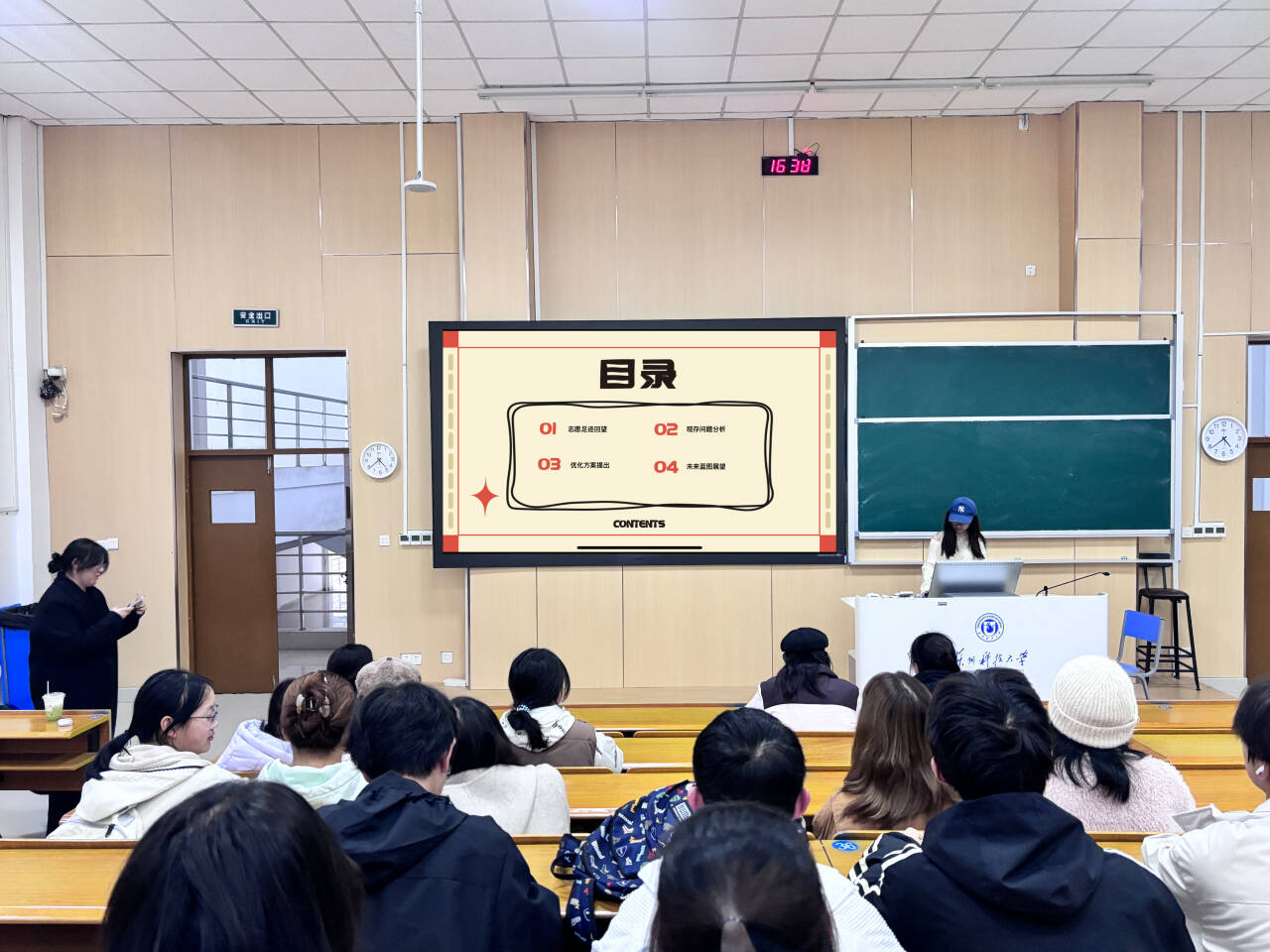会议围绕“复盘过往·优化未来”的核心主题有序推进:“志愿足迹回望”环节,重点强调了校内校外志愿工作的协同开展成果——校内完成了自行车整理、机房打扫、宿舍垃圾分类整理等多项常态化服务每周按时进行,校外联动苏州中西医结合医院进行医院志愿者服务项目,累计服务帮助患者百人次,实现了校园服务与社会公益的双向落地。随后“现存问题分析”环节,干事们结合实操经历,聚焦活动组织衔接不畅、招募信息触达不精准等具体问题展开研讨,提出了10余项针对性的细节反馈。最后在“未来蓝图展望”环节,部署了下月重点志愿项目方向,同时强调了团队协作与责任意识的建设目标。