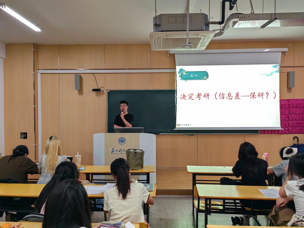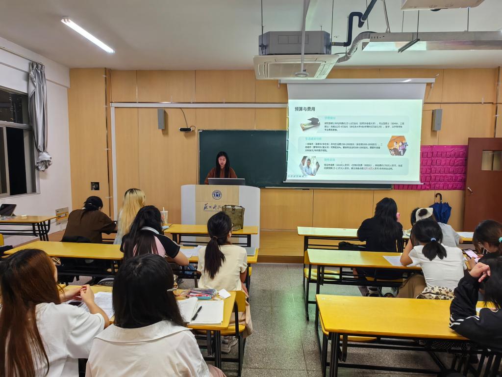 班会现场,三位毕业员工代表结合自身经历,展开干货满满的分享。考公方向的代表从岗位筛选、备考时间线规划、行测与申论复习技巧三个维度切入,详细拆解 “如何平衡学业与备考”“应届生考公优势利用” 等关键问题,还分享了面试礼仪与答题逻辑的实用心得;考研方向的代表聚焦院校选择策略、专业课复习方法、备考心态调节等核心话题,结合商科专业特点,建议同学们 “早定目标、分阶段推进”,并推荐了优质复习资料与线上学习平台;出国方向的代表则围绕语言考试备考、院校申请流程、文书撰写技巧、背景提升规划等内容展开讲解,重点强调了GPA保持、实习经历积累的重要性,还解答了同学们关于留学费用、院校排名与专业适配性的疑问。分享结束后,互动问答环节气氛热烈,24级学子针对自身困惑积极提问,毕业生代表逐一细致回应,现场交流氛围浓厚。
