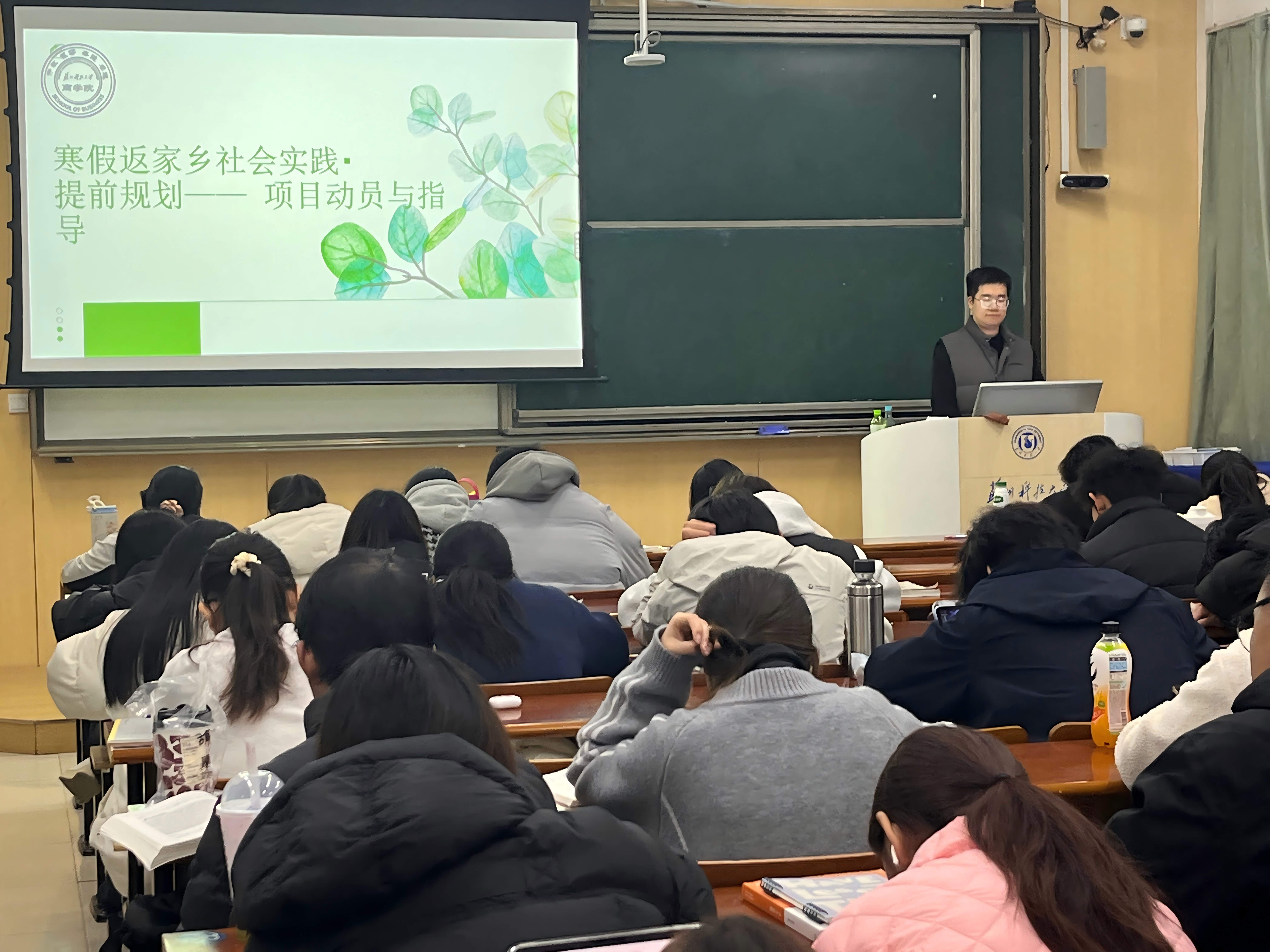 寒假临近,财管22班、金融22班、工商22班联合召开寒假返家乡动员指导主题班会。三个专业180余名员工参会,辅导员姚瑞诚主持并全程答疑。