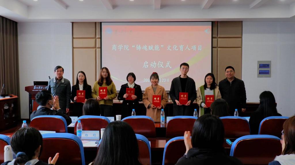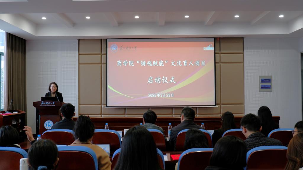 3月23日下午,2138cc太阳集团官网入口“铸魂赋能”文化育人项目启动仪式在公司报告厅举行。员工工作处处长张承祖,校团委副书记周思颖,商公司党委书记江忠华,经理段姝,公司党委副书记兼副经理董现珠、副经理钱燕及师生代表出席活动。
