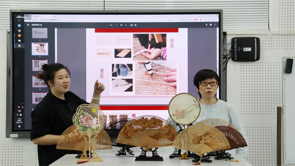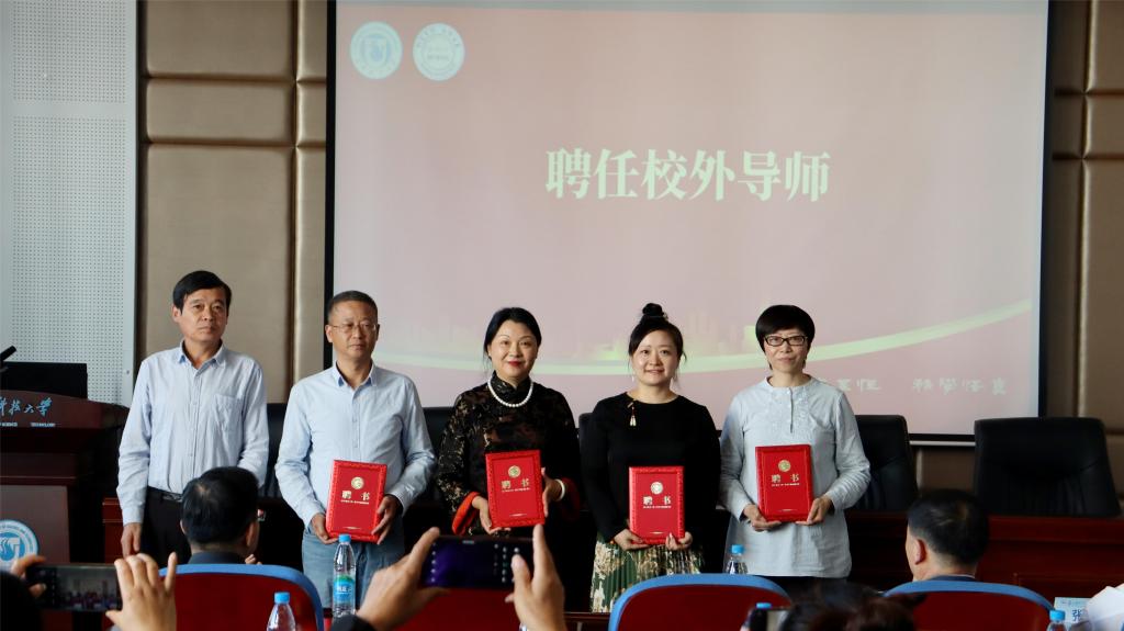 制扇技艺省级非遗代表性传承人陈琴、核雕市级非遗代表性传承人殷毅军、苏绣市级非遗代表性传承人府向红与在场师生们分享了非遗学习和传承的心得体会。江忠华为非遗代表性传承人和专家颁发了校外导师聘任书。