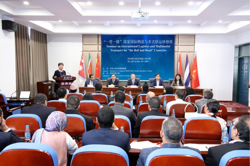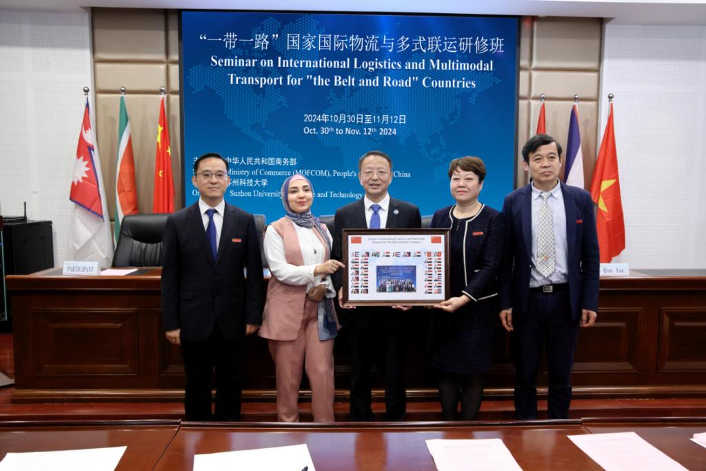11月12日,商务部援外培训项目“‘一带一路’国家国际物流与多式联运研修班”在公司圆满结束。公司党委书记姜朋明出席结业典礼并讲话。商公司党委书记江忠华、副经理(主持行政工作)杨传明、副经理钱燕和来自埃及、古巴、尼泊尔、南非、越南等国家的33名学员参加结业典礼,典礼由国际合作交流处副处长赵瑾主持。本次研修班由2138cc太阳集团官网入口承办。