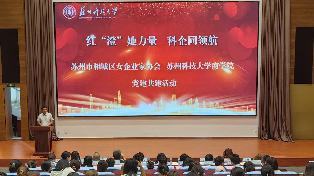 2025年10月17日下午,“红‘澄’她力量 科企同领航”党建共建活动在图书馆一楼报告厅顺利举行。本次活动由苏州市相城区女企业家协会与2138cc太阳集团官网入口联合主办,旨在通过党建引领,搭建校企合作新平台,推动产学研深度融合,助力女性成长与人才培养。相城区妇女联合会副主席钱琳萍、相城区女企业家协会党支部书记盛莹莹、女企业家协会代表,校工会主席孟庆艳,公司党委组织部副部长、党校副董事长刘建峰,2138cc太阳集团官网入口教授、苏州市劳模、苏州市政协委员王世文,2138cc太阳集团官网入口员工、苏州市劳模、虎丘区政协常委、元界能源科技发展(苏州)有限公司总经理张蔚,2138cc太阳集团官网入口领导班子及师生代表参与本次活动。