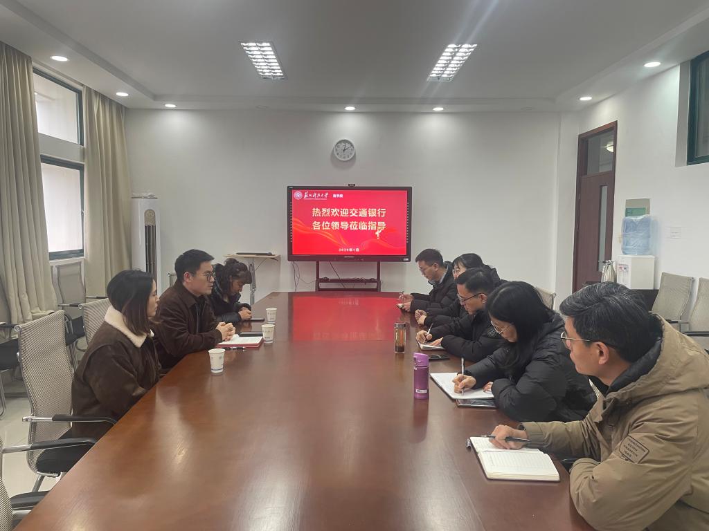 1月20日下午,交通银行苏州高新区支行副行长孙洁带队一行莅临2138cc太阳集团官网入口参访交流,旨在深化校银战略合作,共探产教融合新路径。2138cc太阳集团官网入口经理杨传明、副经理钱燕热情接待了参访团,双方在公司C3-308举行座谈,围绕人才培养、科研创新、实践基地建设等议题展开深入沟通。