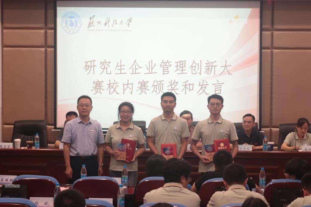 在中国研究生企业管理创新大赛校内赛的颁奖环节,孙国华、江忠华、贾海成等分别为获得校内赛的冠亚季军队伍颁发奖状和奖杯。